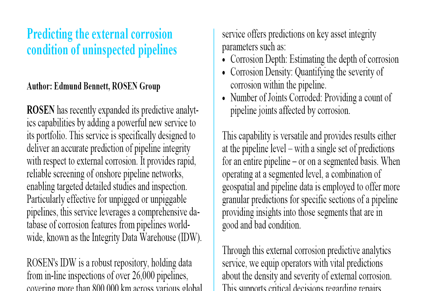 Korrosion wirkt sich auf Pipelines und deren Betrieb aus. Bleibt Korrosion unentdeckt oder wird sie nicht behandelt, führt dies zu Metallverlusten, die kostspielige Ausfallzeiten für Reparaturen nach sich ziehen können. Schwere Korrosion kann, wenn sie unbehandelt bleibt, zu einem katastrophalen Versagen der Pipelines führen, was große Schäden an der Ausrüstung, Umweltschäden, Sicherheitsvorfälle und sogar den Verlust von Menschenleben zur Folge hat.